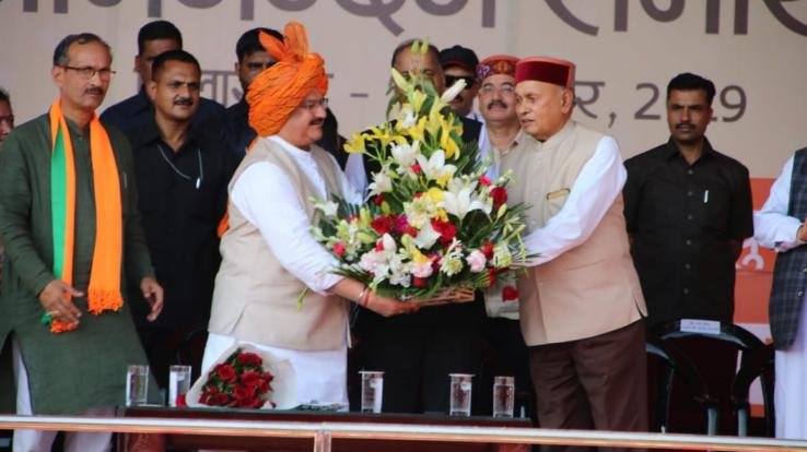 भाजपा के राष्ट्रीय कार्यकारी अध्यक्ष जगत प्रकाश नड्डा का बिलासपुर पहुंचने पर कार्यकर्ताओं ने भव्य स्वागत किया। कार्यकारी अध्यक्ष बनने के बाद नड्डा पहली बार हिमाचल पहुंचे। उन्होंने श्री नयनादेवी माता मंदिर में शीश नवाने के बाद लुहणू मैदान का रुख किया। इस दौरान जनसभा में जेपी नड्डा ने कहा प्रधानमंत्री नरेंद्र मोदी, संसदीय बोर्ड और अमित शाह का आभार जताया, कि उन्होंने हिमाचल जैसे छोटे से राज्य के नेता को इतनी बड़ी ज़िम्मेवारी सौंपी। नड्डा ने कहा पीएम मोदी ने पाकिस्तान को अलग-थलग कर भारत को अंतरराष्ट्रीय मंच पर मजबूत किया है। धारा 370 को हटाना छोटी घटना नहीं थी। काम करने की यदि किसी में इच्छा शक्ति है तो वह भाजपा प्रतिनिधिमंडल में है। नड्डा ने मंच से सीएम जयराम ठाकुर के कार्यों की सराहना की। नड्डा ने कहा अब डबल इंजन की सरकार काम कर रही है। कुछ करने के लिए तो बाहर जाना ही पड़ेगा, इसीलिए कुछ करके प्रदेश में आ रहा हूं। राष्ट्रीय कार्यकारी अध्यक्ष जगत प्रकाश नड्डा का बिलासपुर पहुंचने पर कार्यकर्ताओं ने भव्य स्वागत किया।