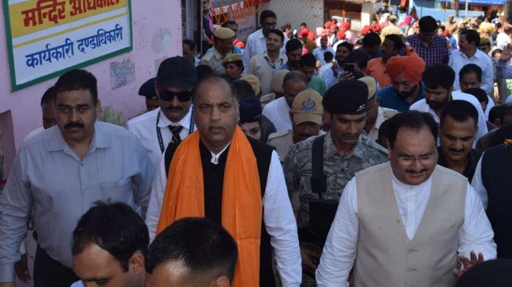 मुख्यमंत्री जय राम ठाकुर ने सोमवार को पंजाब के श्री आनंदपुर साहिब के श्री केशगढ़ साहिब गुरूद्वारे में माथा टेकने के बाद हिमाचल प्रदेश के प्रसिद्ध श्री नैनादेवी मंदिर में पूजा अर्चना की। इस दौरान भाजपा के कार्यकारी राष्ट्रीय अध्यक्ष जगत प्रकाश नड्डा भी उपस्थित थे। मुख्यमंत्री जय राम ठाकुर का श्री नैनादेवी मार्ग पर टोबा में तथा श्री नैनादेवी पहुंचने पर भाजपा के पदाधिकारियों तथा स्थानीय लोगों द्वारा भव्य स्वागत किया गया। श्री नैनादेवी मंदिर ट्रस्ट के अध्यक्ष एवं उपायुक्त बिलासपुर राजेश्वर गोयल तथा श्री नैनादेवी मंदिर के वरिष्ठ पुजारियों ने मुख्यमंत्री जय राम ठाकुर, भाजपा के कार्यकारी राष्ट्रीय अध्यक्ष जगत प्रकाश नड्डा तथा उनकी धर्मपत्नी मल्लिका नड्डा को सम्मानित किया। केशगढ़ साहिब गुरूदारा पहुंचने पर प्रबंधन समिति द्वारा मुख्यमंत्री जयराम ठाकुर तथा भाजपा के कार्यकारी राष्ट्रीय अध्यक्ष जगत प्रकाश नड्डा को सम्मानित भी किया गया।