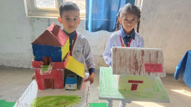 दिल्ली कान्वेंट स्कूल में प्रदर्शनी कर बताया कच्चे व पक्के मकान का मोल