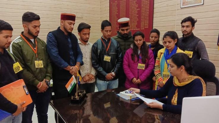 अखिल भारतीय विद्यार्थी परिषद की इकाई बिलासपुर द्वारा एसपी साक्षी वर्मा जी को बिलासपुर महाविद्यालय मे अध्यापक द्वारा छात्रा के उत्पीड़न मामले को लेकर ज्ञापन सौंपा। जानकारी देते हुए विद्यार्थी परिषद के हमीरपुर विभाग के संयोजक सौरव गौतम ने कहा की इस मामले को कॉलेज प्रशासन के समक्ष आज 4 दिन हो गए लेकिन अभी तक कॉलेज प्रशासन द्वारा किसी भी प्रकार का कोई भी निर्णय नहीं लिया गया है। उन्होंने कहा कि यदि प्रशासन जल्द से जल्द इस मामले में कड़ा फैसला नहीं सुनाता है तो आने वाले समय में विद्यार्थी परिषद जागरूक छात्र संगठन होने के नाते विद्यार्थी परिषद इस तरह की घटना को बिल्कुल भी सहन नहीं करेगी। गुरु शिष्य परंपरा को लज्जित करने वाले प्राध्यापक को कड़ी से कड़ी कार्रवाई की जानी चाहिए। अखिल भारतीय विद्यार्थी परिषद बिलासपुर इकाई मांग करती है की तुरंत प्रभाव से अध्यापक को बर्खास्त किया जाना चाहिए। इस तरह की मानसिकता रखने वाले अध्यापक को तो महाविद्यालय के अंदर भी प्रवेश नहीं दिया जाना चाहिए। उन्होंने कहा की विद्यार्थी परिषद हमेशा छात्रों के हितों के लिए हमेशा आवाज उठाएगी विद्यार्थी परिषद इसको लेकर कड़ा आंदोलन करेगी तथा अध्यापक को महाविदद्यालय के अंदर प्रवेश करने भी नहीं देगी। इस मौके पर हमीरपुर विभाग के संयोजक सौरव गौतम जी ने कहा कि यदि प्रशासन दुर्व्यवहार के मामले में उचित तथा कड़ा फैसला नहीं सुनाता है तो विद्यार्थी परिषद इसका कड़ा विरोध करेगी तथा आने वाले समय में उग्र आंदोलन करने से नहीं चूके जी और इसका जिम्मेदार सिर्फ केवल प्रशासन होगा।
