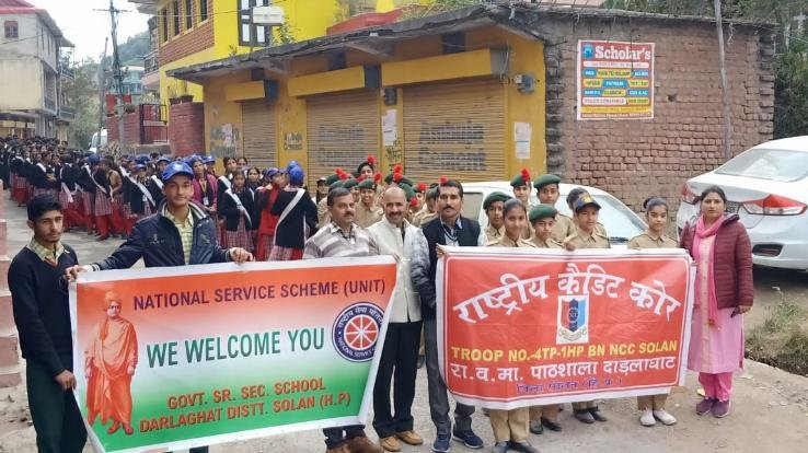 राजकीय वरिष्ठ माध्यमिक विद्यालय दाड़लाघाट में एनसीसी दिवस मनाया गया। इस दिवस के मुख्य अतिथि हीरालाल रहे। कार्यक्रम की अध्यक्षता प्रधानाचार्य इंदु शर्मा ने की। एनसीसी दिवस के अवसर पर कार्यक्रम प्रभारी कल्पना ने एनसीसी के उद्देश्यों व इसके इतिहास पर प्रकाश डाला। प्रार्थना सभा में इस दिवस के अवसर पर मुख्य अतिथि, प्रधानाचार्य इंदु शर्मा, विद्यालय प्रबंधन समिति के अध्यक्ष हेमराज व उपप्रधानाचार्य हंसराज ने छात्रों को राष्ट्र भक्ति और राष्ट्र सेवा के लिए प्रेरित करते हुए युवा पीढ़ी से नशे जैसी सामाजिक बुराई को जड़ से उखाड़ फेंकते हुए राष्ट्र निर्माण में अपना योगदान देने का आह्वान किया।इस अवसर पर 15 नवंबर से 15 दिसंबर तक नशा निवारण मास के अंतर्गत विद्यालय में नशा एक अभिशाप है विषय पर कक्षा छठी से आठवीं तक चित्रकला प्रतियोगिता व नवम और दशम कक्षा के लिए नारा लेखन प्रतियोगिता और जमा एक व जमा दो कक्षाओं के मध्य निबंध लेखन प्रतियोगिता का आयोजन करवाया गया। इसमें छात्रों ने बढ़ चढ़कर भाग लिया। इस अवसर पर मुख्य अतिथि,प्रधानाचार्य इंदु शर्मा, विद्यालय प्रबंधन समिति के अध्यक्ष हेमराज ने सामूहिक रूप से एनसीसी व एनएसएस के स्वयंसेवकों की एक जागरूकता रैली को हरी झंडी दिखाई। इसमें विद्यालय से अंबुजा चौक तक लोगों को नशे से होने वाले नुकसान से अवगत कराया और लोगों से विशेषकर युवा पीढ़ी को नशे से दूर रहने की अपील भी की गई। इस जागरूकता रैली में उप प्रधानाचार्य हंसराज, एनएसएस प्रभारी नरेंद्र, एनसीसी प्रभारी कल्पना, प्रवक्ता महेंद्र, वीणा गुप्ता तथा विद्यालय के सभी अध्यापकों ने अपना सहयोग दिया।
