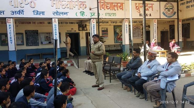 राजकीय आदर्श वरिष्ठ माध्यमिक विद्यालय धुन्दन में नशा निवारण के अंतर्गत पुलिस विभाग की ओर से थाना प्रभारी दाड़लाघाट मोती सिंह व उनकी टीम ने नशे से संबंधी जानकारी सांझा की। इस कार्यक्रम की अध्यक्षता प्रधानाचार्य सरताज सिंह राठौर ने की। विद्यार्थियों को नशे के प्रकार व लक्षणों के बारे में विस्तार पूर्वक बताया। चिट्टा आजकल प्रचलन में आए नशे के बारे में बताया कि इसमें इतना जहरीला रासायनिक पदार्थ होता है,जो शरीर को पूरी तरह तहस-नहस कर आने वाले वंश को ही समाप्त कर देता है। नशे से पीड़ित व्यक्तियों की पहचान बताई। नशे से पीड़ित व्यक्तियों का अस्तपाल में नि:शुल्क इलाज भी हो रहा है। ड्रग फ्री हिमाचल ऐप की जानकारी दी जिसके माध्यम से नशे की सप्लाई करने वालों की जानकारी दी जा सकती है। इस अभियान के अंतर्गत एनएसएस यूनिट ने निबंध प्रतियोगिता भी करवाई। इसमें 44 विद्यार्थियों ने भाग लिया। इसमें प्रथम स्थान प्रीति,द्वितीय स्थान उर्मिला तथा तृतीय स्थान अनिता ने प्राप्त किया। नशा मुक्ति अभियान के अंतर्गत थाना प्रभारी दाड़लाघाट मोती सिंह ने समस्त विद्यालय परिवार को शपथ दिलाई। इस अवसर पर समस्त विद्यालय परिवार व बच्चे मौजूद रहे।