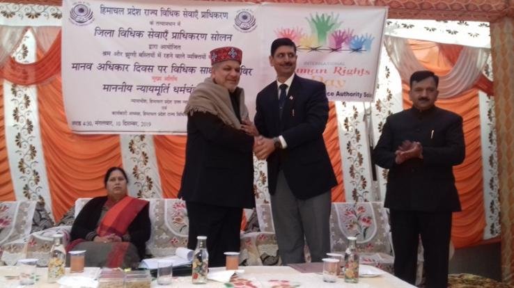 जिला विधिक सेवा प्राधिकरण सोलन द्वारा आज मानवाधिकार दिवस के उपलक्ष्य में नालागढ़ उपमंडल के झाड़माजरी स्थित बीबीएनआईए परिसर में विधिक साक्षरता एवं जागरूकता कार्यक्रम का आयोजन किया गया। कार्यक्रम में हिमाचल प्रदेश उच्च न्यायालय के न्यायाधीश एवं हिमाचल प्रदेश राज्य विधिक सेवाएं प्राधिकरण के कार्यकारी अध्यक्ष न्यायमूर्ति धर्मचंद चौधरी मुख्यातिथि के रूप में उपस्थित रहे। इस शिविर में बद्दी-बरोटीवाला-नालागढ़ की विभिन्न औद्योगिक इकाईयों के 300 से अधिक कामगारों ने भाग लिया। न्यायमूर्ति धर्मचंद चौधरी ने इस अवसर पर कहा कि आज के परिवेश में बढ़ता अपराध मानावधिकार के लिए एक बड़ी चुनौती है। उन्होंने कहा कि सभी नागरिकों के मानव अधिकारी महत्वपूर्ण हैं। हमारे देश का संविधान सभी नागरिकों के लिए एक समान अधिकार सुनिश्चित बनाता है। मौलिक अधिकारों के रूप में हमारे संविधान ने सभी नागरिकों को मानव अधिकार सुनिश्चित किए हैं। उन्होंने कहा कि हमें सभी नागरिकों के अधिकारों का सम्मान करना चाहिए। उन्होंने कहा कि वर्तमान समय की भागदौड़ में आगे निकलने की होड़ के कारण अनेक बार मानव अधिकारों के साथ समझौता होता है। यह सुनिश्चित बनाया जाना चाहिए कि सभी नागरिकों के मानव अधिकार सुरक्षित रहें। उन्होंने मानवाधिकार दिवस के आयोजन के उद्देश्यों के बारे में विस्तृत जानकारी दी। न्यायमूर्ति धर्मचंद चौधरी ने इस अवसर पर कहा कि बीबीएन क्षेत्र में संगठित व असंगठित क्षेत्र के कामगारों के लिए विधिक सेवा प्रकोष्ठ की स्थापना की जाएगी। इस प्रकोष्ठ में कामगार श्रमिक नियमों के अतिरिक्त अपने रोजमर्रा जीवन से संबंधित कानूनी जानकारी प्राप्त कर सकेंगे। उन्होंने कहा कि इस केंद्र में विधिक सेवा प्राधिकरण द्वारा अधिवक्ता एवं तथा पैरालीगल वालंटियर नियुक्त किए जाएंगे। उन्होंने कहा कि इस प्रकोष्ठ की स्थापना राष्ट्रीय विधिक सेवाएं अधिनियम के अनुरूप की जाएगी। उन्होंने कहा कि भारतीय संस्कृति में मानवधिकारों को सर्वोच्च स्थान दिया गया है। संस्कृति में अनेक उदाहरणों के माध्यम मानव अधिकारों की रक्षा करने की सीख दी गई है। हम सभी को अपनी संस्कृति और देश के संविधान के अनुरूप मानव अधिकारों को सुरक्षित रखना चाहिए। जिला एवं सत्र न्यायाधीश एवं जिला विधिक सेवा प्राधिकरण के अध्यक्ष भूपेश शर्मा ने मुख्यातिथि का स्वागत किया तथा कार्यक्रम की जानकारी दी।
