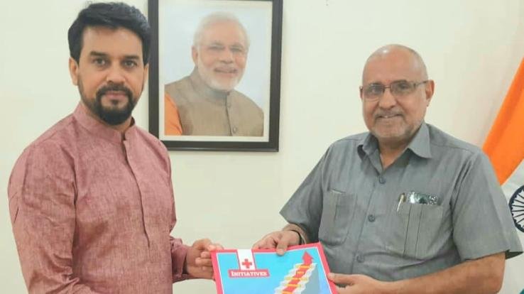 भाजपा प्रदेश प्रभारी एवं रेड क्रॉस के राष्ट्रीय उपाध्यक्ष अविनाश राय खन्ना ने नई दिल्ली में केंद्रीय खेल, सूचना और प्रसारण मंत्री अनुराग ठाकुर से भेंट की। उन्होंने अनुराग ठाकुर को इन महत्वपूर्ण मंत्रालयों की कमान संभालने के लिए शुभकामनाएं भी दी।अविनाश राय खन्ना ने केंद्रीय मंत्री अनुराग ठाकुर को रेड क्रॉस की पुस्तिका "इनीशिएटिव्स" एवं स्वयं अपनी लिखी पुस्तिका" माय एक्सपीरियंस ड्यूरिंग कोविड-19, अ बिग सैल्यूट टू कोरोना वॉरियर्स" भेंट की। उन्होंने कहा कि अनुराग ठाकुर देश एवं हिमाचल प्रदेश के युवा नेतृत्व है और इनके नेतृत्व में खेल, सूचना एवं प्रसारण मंत्रालय को नई दिशा एवं ऊर्जा प्राप्त होगी। उन्होंने कहा कि पूर्व में भी अनुराग ठाकुर ने भाजयुमो के राष्ट्रीय अध्यक्ष के रूप में युवाओं का नेतृत्व किया है और इससे पूर्व राज्य केंद्रीय वित्त मंत्री के रूप में भी अच्छा कार्य किया है, यह नियुक्ति हिमाचल प्रदेश के लिए गौरव की बात है ।