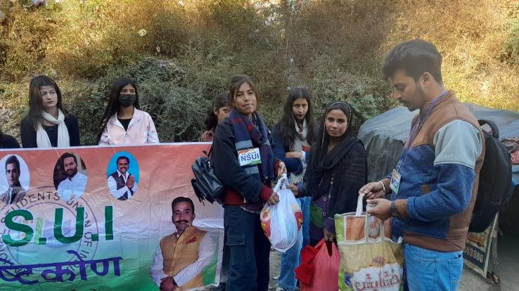भारतीय राष्ट्रीय छात्र संगठन आरकेएमवी इकाई ने शिमला से सटे कस्बे मल्याणा के समीप जरुरतमंद लोगों को वस्त्र वितरित किए। प्रदेश में बढ़ रही ठंड को देखते हुए छात्र संगठन ने यह कदम उठाया है। इस मौके पर छात्र संगठन एनएसयूआई हिमाचल प्रदेश के प्रदेश महासचिव शुभम वर्मा भी छात्रों के साथ उपस्थित रहे।उनके अलावा महाविद्यालय आरकेएमवी में एन एसयूआई की छात्रा कार्यकर्ता ममता, माही, सुमन, रिया, काजल, मन्नत इत्यादि मौजूद रही। एसयूआई प्रदेश महासचिव शुभम वर्मा ने कहा कि प्रदेश में ठंड बढ़ रही है। ऐसे में प्रदेश में बहुत सारे जरूरतमंद लोग रहते है। ऐसे में हर व्यक्ति को या सामाजिक संगठन को अपने स्तर पर जितना हो सके जरूरतमंदों लोगो की मदद करनी चाहिए। उन्होंने कहा कि हिमाचल प्रदेश पहाड़ी प्रदेश है। प्रदेश में कड़ाके की ठंड पड़ती है, हिमपात होता है, ऐसे में सर्दियों के समय में जरूरतमंदों को गर्म कपड़ों की बेहद आवश्यकता होती है।