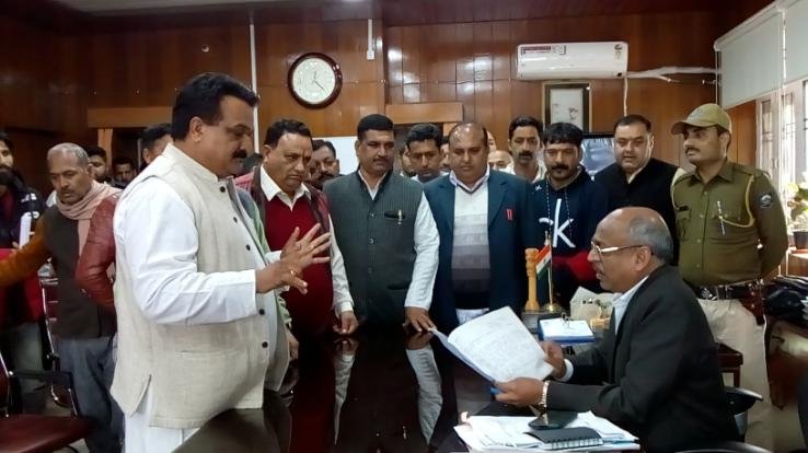 फोरलेन ठेकेदारों ने अपनी बकाया राही 55 करोड़ न मिलने पर ने दिया उपायुक्त कार्यालय में धरना