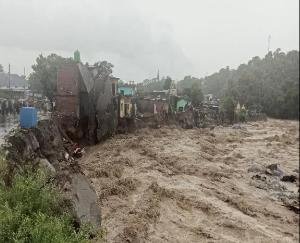 हिमाचल प्रदेश के कांगड़ा जिले में शाहपुर से करीब 25 किलोमीटर दूर बोह घाटी में सोमवार को भारी बारिश के आई बाढ़ में 10 घर बह गए। मलबे में दबे लोगों को निकालने के लिए मंगलवार सुबह करीब पांच बचे एनडीआरएफ के जवानों ने बचाव अभियान शुरू किया। कल देर रात तक चले बचाव अभियान के दौरान पांच लोगों को सुरक्षित बचाया गया। इनमें दो बच्चीयां भी शामिल हैं। लेकिन प्रशासन ने अभी भी मलबे में करीब नौ लोगों के दबे होने की आशंका जताई है। सोमवार को बोह घाटी में एक महिला का शव मिला था। यहां अन्य घरों को खाली करवा लिया गया है। डीसी निपुण जिंदल और एसपी विमुक्त रंजन भी मौके पर मौजूद है। एनडीआरएफ के करीब 50 जवान बचाव अभियान में लगे हैं।
