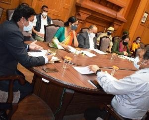 उपायुक्त शिमला आदित्य नेगी ने आज अपने कार्यालय कक्ष में उच्च न्यायलय के आदेषों अनुसार अपने कार्यालय कक्ष में अधिकारियों के साथ बैठक की। उन्होनें बताया कि कोरोना संकटकाल के मध्यनजर एवं पर्यटकों की बढ़ती आवाजाही को देखते हुए मानक संचालन नियमों की अनुपालना करवाना आवश्यक है। उपायुक्त ने बताया कि उपमण्डलाधिकारियों, तहसीलदार एवं नायब तहसीलदार स्तर पर टास्क फोर्स एवं समितियां गठित की जा रही है, ताकि पर्यटक सीजन में होटलों एवं रेस्टोरेंटों में सुरक्षा के दृष्टिगत मानक संचालन प्रक्रिया का पालन संभव हो सके। आदित्य नेगी ने विभिन्न विभागों के अधिकारियों से समन्वय स्थापित करने को कहा, ताकि जिला में मानक संचालन प्रक्रिया का पालन संभव हो सके। इस अवसर पर उपमण्डलाधिकारी शिमला ग्रामीण बाबू राम शर्मा, डीएसपी शिमला कमल वर्मा, जिला पर्यटन अधिकारी जीडी काल्टा एवं अन्य अधिकारीगण भी उपस्थित थे।