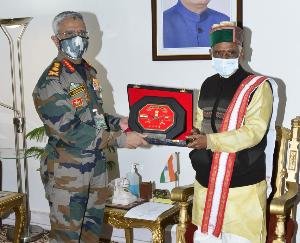 सेना प्रमुख जनरल एमएम नरवणे ने अपने हिमाचल दौरे के दौरान आज राजभवन में राज्यपाल बंडारू दत्तात्रेय से भेंट की। अपनी भेंट के दौरान, उन्होंने सेना व हिमाचल के सीमावर्ती क्षेत्रों से जुड़े अनेक विषयों पर विस्तृत चर्चा की। सेना प्रमुख ने राजभवन परिसर में चिनार का पौधा भी रोपा। इस मौके पर, राज्यपाल ने चीन के साथ लगते हिमाचल के सीमावर्ती क्षेत्रों में अधोसंरचना विकास पर बल दिया। उन्होंने कहा कि सड़क, हैलीपैड व अन्य अधोसंरचना विकास में सेना की अहम भूमिका है। सीमा से सटे गांवों में युवा जनसंख्या को रोकने की आवश्यकता है। इसके लिए स्थानीय स्तर पर स्वरोजगार व रोजगार के अवसर तलाशे जाने चाहिए। राज्य के ग्रामीण क्षेत्रों के युवाओं को भी सेना में अवसर दिया जाना चाहिए।दत्तात्रेय ने शिमला के वाॅकर अस्पताल का मामला भी सेना प्रमुख से उठाया। सेना प्रमुख ने कहा कि वह इससे पूर्व शिमला में आरट्रेक में अपनी सेवाएं दे चुके हैं और हिमाचल को वह अपना पुराना घर मानते हैं। इसलिए यहां आकर उन्हें बहुत खुशी मिलती है। उन्होंने कहा कि भारतीय सेना दुश्मन की हर नापाक कोशिश का मुंहतोड़ जवाब देने में सक्षम है। जहां तक चीन के साथ लगती सीमा का प्रश्न है, बातचीत हो रही है और चिंता करने वाली कोई बात नहीं है। हमारी तरफ से व्यापक स्तर पर ‘मैन एण्ड मैटीरियल’ तैनात है और सेना पूरी तरह सजग है। उन्होंने कहा कि सेना द्वारा अगले 5-10 वर्षों के लिए सीमा क्षेत्रों में सड़क निर्माण को लेकर योजना तैयार की गई है। सड़क निर्माण से इन क्षेत्रों में विकास भी तेजी से होगा और युवाओं का पलायन भी रूक सकेगा। जनरल नरवणे ने कहा कि देश में सेना के प्रति युवाओं में काफी जोश है और बड़ी संख्या में युवा सेना में आने के लिए तत्पर रहते हैं। उन्होंने कहा कि सेना की कोशिश है कि देश के जिन जिलों से सेना में प्रतिनिधित्व नहीं है वहां से युवाओं को मौका दिया जा सकता है। उन्होंने आश्वासन दिया कि वाॅकर अस्पताल को शीघ्र ही आरम्भ करने की कोशिश की जाएगी।