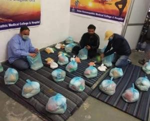 होम्योपैथिक कॉलेज कुमारहट्टी ने सोलन व्यापार मंडल के साथ मिलकर रोग प्रतिरोधक क्षमता बढ़ाने के लिए तकरीबन 500 लोगों को मुफ्त दवाई का वितरण किया। काॅलेज के डॉक्टर अंकित दुबे, डॉ मनीष तिवारी व डॉ अवनीश ने व्यापार मंडल सोलन के अध्यक्ष मुकेश गुप्ता के सहयोग से माल रोड़ और अप्पर बाजार की दुकानों पर इस Arsenicum Album 30 दवा को बांटकर दुकानदारों को कोरोना महामारी से बचने के लिए व दवाई के इस्तेमाल और फायदे के बारे मे जागृत किया, वहीं डॉक्टरों की टीम ने पंजाब नेशनल बैंक सोलन के पूरे स्टाफ को भी दवाई का वितरण किया। इस टीम ने पंजाब नेशनल बैंक के मैनेजर का सहयोग के लिए धन्यवाद किया। कुमारहटी होम्योपैथिक के डॉक्टरों की टीम ने व्यापार मंडल अध्यक्ष मुकेश गुप्ता को बताया की उनका लक्ष्य हर व्यापारी तक इस दवा को निशुल्क पहुंचाना है क्योंकि व्यापारी हर रोज बहुत से ग्राहकों से मिलता है तो उसकी रोग प्रतिरोधक क्षमता सुदृढ़ होनी चाहिए। मुकेश गुप्ता ने डाक्टरों की टीम का आभार व्यक्त करते हुए कहा कि उन्होंने व्यापारी वर्ग के बारे में सकारात्मक सोच रखते हुए हमारे व्यापारी भाईयों को कोरोना से लड़ने के लिए मुफ्त में दवा उपलब्ध करवाई। मुकेश गुप्ता ने इसके लिए होम्योपैथिक कॉलेज कुमारहट्टी के प्रबंधन का आभार व्यक्त किया। इस समय पूरा देश व विश्व करोना जैसी महाविनाशक बीमारी से जंग लड़ रहा है। इस बीमारी में सरकार को विभिन्न संस्थाएं सहयोग कर रही है, ताकि हम करोना को हरा सकें और आमजन को इस महाविनाशक बीमारी से बचा सकें। इस समय आयुष मंत्रालय हर आमजन की रोग प्रतिरोधक क्षमता को बढ़ाने के लिए विभिन्न प्रकार की दिशा निर्देश जारी कर रहा है, इसके लिए चाहे आयुर्वेदिक काढ़ा हो या होम्योपैथिक दवाई हो साथ ही इस बीमारी से बचने के लिए आरोग्य सेतु ऐप का इस्तेमाल करने की सलाह भी दी जा रही है। इसी क्रम में होम्योपैथिक काॅलेज कुमारहट्टी ने आमजन को मुफ्त दवा वितरण का अभियान शुरू किया है।