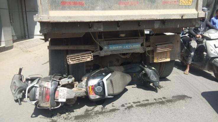 सोमवार को सोलन के बाईपास चौक पर एक बहुत बड़ा हादसा होते - होते बचा। टिप्पर के बैक होने की वजह से दो स्कूटिया चपेट में आयी है। परंतु स्कूटी सवार, टिप्पर की चपेट में आने से बाल बाल बचे।