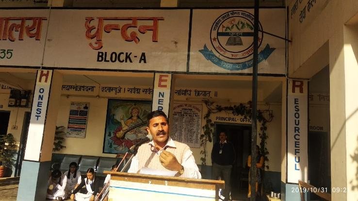 राजकीय आदर्श वरिष्ठ माध्यमिक पाठशाला धुन्दन में राष्ट्रीय एकता दिवस मनाया गया। इसकी अध्यक्षता स्कूल के प्रधानाचार्य सरताज सिंह राठौर ने की। प्रातःकालीन सभा में एनएसएस इकाई की ओर से लौह पुरुष सरदार वल्लभ भाई पटेल के जीवन के बारे में स्वयंसेवियों ने प्रकाश डाला। प्रवक्ता प्रकाश चंद बट्टू ने सरदार वल्लभ पटेल के स्वतन्त्र भारत में उनकी भूमिका पर प्रकाश डाला। उन्होंने बताया कि किस प्रकार पटेल की दृढ़ इच्छा शक्ति से एक भारत के लिए 565 रियासतों का विलय भारत के लिए किया गया। उन्होंने कहा कि पटेल का राष्ट्रीय चरित्र इतना ऊंचा था इसके लिए भारत सरकार ने विश्व की सबसे ऊंची प्रतिमा पटेल की याद में बनाई है। उन्होंने कहा कि आधुनिक भारत में जम्मू कश्मीर से धारा 370 हटाना उनके लिए सच्ची श्रद्धांजलि है। वहीँ आने वाले समय में अखंड भारत का सपना भी साकार होगा। प्रधानाचार्य सरताज सिंह राठौर ने सभी बच्चो से आग्रह किया कि हमें पटेल के राष्ट्रीय चरित्र से प्रेरणा लेनी चाहिए।