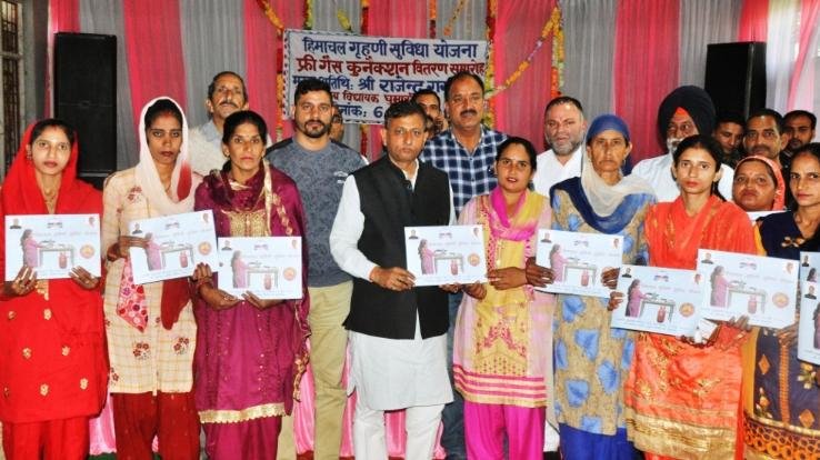 विधायक राजेंद्र गर्ग ने घुमारवीं के हारकुकार के संतोषी माता मंदिर में हिमाचल गृहिणी सुविधा योजना के तहत 18 पंचायतों के 149 प्रात्र लाभार्थियों को निशुल्क गैस कनैक्शन वितरित किए। इस अवसर पर अपने सम्बोधन में उन्होंने कहा कि महिलाओं को धुएं से होने वाले रोगों से बचाने के लिए आजादी के बाद की सबसे बड़ी योजना उज्जवला योजना के माध्यम से 8 करोड़ परिवारों को निशुल्क गैस सुविधा प्रदान की गई है। उन्होंने कहा कि अभी तक जिला बिलासपुर में लगभग 6 हजार 4 सौ गृहिणीयों को लाभान्वित किया जा चुका है। उन्होंने बताया कि विधानसभा क्षेत्र घुमारवीं में अभी तक गृहणी सुविधा योजना के तहत 3340 कुनैक्शन दिए जा चुके हैं। उन्होंने कहा कि धर्मशाला में अब तक की सबसे बड़ी इन्वेस्टर मीट करवाना मुख्यमंत्री जयराम ठाकुर की दूरदृष्टि को दिखाता है कि वह प्रदेश के विकास के लिए ईमानदारी से प्रयास कर रहे हैं। उन्होने प्रधानमंत्री जनआरोग्य योजना की जानकारी देते हुए बताया कि इस योजना के अंतर्गत रोगी को अस्पताल में दाखिल होने पर 5 लाख रुपए तक का सालाना कैशलेस उपचार सरकार की तरफ से निशुल्क दिया जाता है। उन्होंने कहा कि प्रधानमंत्री किसान सम्मान निधी योजना के तहत जिन किसानों के पास 2 हैक्टयर तक की भूमि है उन किसानों को 6 हजार रूपए वार्षिक प्रदान किए जा रहे है। इस अवसर पर भाजपा मंडल अध्यक्ष सुरेश ठाकुर, भाजपा जिला आईटी प्रकोष्ठ के संयोजक राजेश शर्मा, नगर परिषद के पूर्व सदस्य सरदार प्रेम सिंह, भाजपा शहरी इकाई के महामंत्री संदीप शर्मा, उपप्रधान सुधीर चंदेल, कमलेश शर्मा राजेंद्र चंदेल व जिला भाजपा खेल प्रकोष्ठ के संयोजक दिनेश ठाकुर सहित सिविल सप्लाई विभाग के निरीक्षक विनोद कपिल इंडेन गैस कंपनी के मैनेजर संजीत धीमान के अतिरिक्त स्थानीय गणमान्य लोग उपस्थित रहे।