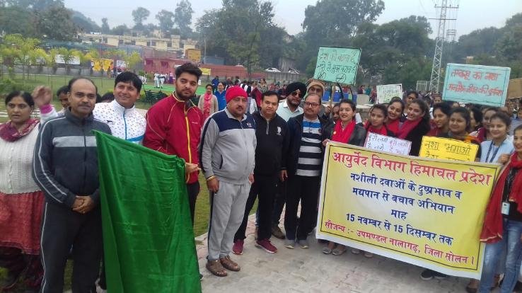 खंड आयुर्वेदिक चिकित्सा अधिकारी डॉ. राजेश शर्मा ने कहा कि नशे से शरीर, मन और आत्मा का संतुलन बिगड़ जाता है और व्यक्ति सामाजिक व आर्थिक पतन की ओर अग्रसर हो जाता है। निरंतर योग करने से जहां मानसिक स्वास्थ्य लाभ प्राप्त होता है नशे जैसी दुष्प्रविति से भी बचा जा सकता है। इस अवसर पर लॉर्ड महावीरा नर्सिंग संस्थान की छात्राओं ने नशे के विरूद्ध एक नुक्कड़ नाटक भी प्रस्तुत किया गया। नगर परिषद नालागढ़ के कार्यकारी अध्यक्ष धर्मेंद राणा, खंड विकास अधिकारी नालागढ़ राजकुमार, डॉ. संदीप, विभिन्न विभागों के अधिकारी, विभिन्न शैक्षणिक संस्थानों के छात्र-छात्राएं व बड़ी संख्या में स्थानीय लोग उपस्थित थे।