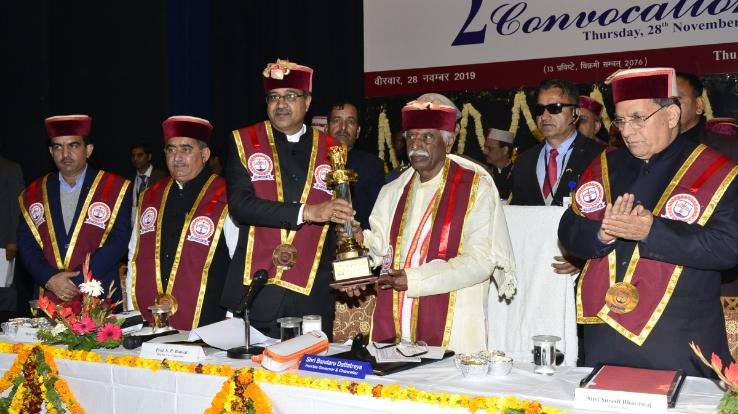 हमीरपुर : राज्यपाल बंडारू दत्तात्रेय ने कहा कि प्रतिस्पर्धात्मक वैश्विक अर्थव्यवस्था के इस दौर में हमें स्नातकों को गुणात्मक शिक्षा प्रदान करनी चाहिए। इसके लिए विश्वस्तरीय शैक्षणिक प्रबंधन कार्यप्रणाली अपनाना आवश्यक है। इस अवसर पर उन्होंने विश्वविद्यालय के मेधावी छात्रों को 269 पदक और डिग्रियां प्रदान की। इसके अलावा उन्होंने विद्यार्थियों को 14 स्वर्ण पदक, 12 रजत पदक और 243 डिग्रियां प्रदान कीं। विद्यार्थियों को दीक्षांत समारोह की बधाई देते हुए राज्यपाल ने कहा कि उन्हें अपनी शिक्षा देश व समाज के हित के लिए उपयोग करनी चाहिए तथा विज्ञान एवं तकनीक के अपने ज्ञान को समाज में परिवर्तन लाने के लिए उपयोग में लाना चाहिए। उन्होंने नि:शुल्क ऑनलाइन पाठ्यक्रमों तथा सूचना प्रौद्योगिकी से युक्त फोरम व शिक्षण के सामंजस्य पर बल दिया। उन्होंने कहा कि पाठ्यक्रम में उद्योग से संबंधित विषयों को सम्मिलित किया जाना चाहिए। उन्होंने कहा कि जनसांख्यिीकी लाभ तभी प्राप्त हो सकते है जब अधिकांश युवाओं को बेहतर शिक्षा, ज्ञान और कौशल प्रदान किया जाए। इसके लिए विश्वविद्यालयों को आधुनिक तकनीक से युक्त रचनात्मक आधार पर कार्य करने की आवश्यकता है। राज्यपाल ने कहा कि विश्वविद्यालयों को अपनी सामाजिक जिम्मेदारी में योगदान देना चाहिए। उन्होंने कहा कि विश्वविद्यालय के कम से कम पांच छात्रों को हर दो माह उपरांत गांव जाकर ग्रामीणों को महत्वपूर्ण योजनाओं जैसे स्वच्छता, साक्षरता के बारे में जागरुक करवाना चाहिए। उन्होंने युवाओं को मेक इन इंडिया, स्टार्टअप इंडिया और मुद्रा योजना गारंटी जैसी योजनाओं का लाभ उठाने पर बल दिया। उन्होंने युवाओं से नवाचार पर काम करने और उद्यमिता की ओर बढ़ने का आह्वान किया। उन्होंने राष्ट्रपिता महात्मा गांधी तथा पूर्व प्रधानमंत्री अटल बिहारी वाजपेयी के जीवन पर विश्वविद्यालय में अध्ययनपीठ शुरू करने पर अधिकारियों को बधाई दी। शिक्षा मंत्री सुरेश भारद्वाज ने इस अवसर पर कहा कि शिक्षा का जीवन में विशेष महत्व है। अपनी बुद्धिमता के कारण हम अन्य सभी जीवों से अलग है और ज्ञान से बुद्धिमता और शिक्षा से ज्ञान अर्जित किया जा सकता है। हम शिक्षा के विस्तार पर ध्यान दे रहे है, लेकिन शिक्षा को रोजगारन्मुखी बनाने की आवश्यकता है, इसके लिए कौशल आवश्यक है। उन्होंने कहा कि वर्तमान युग तकनीक का है और हमें इस पर कार्य करने की आवश्यकता है, इससे रोजगार के नए अवसर मिलेंगे। सुरेश भारद्वाज ने कहा कि हिमाचल प्रदेश शिक्षा के क्षेत्र में तेजी से आगे बढ़ रहा है। हिमाचल की स्थापना के समय यहां केवल 10 प्रतिशत साक्षरता दर थी, जो आज अप्रवासी कामगारों को अलग रख 90 प्रतिशत हो गई है। उन्होंने कहा कि प्रदेश में 