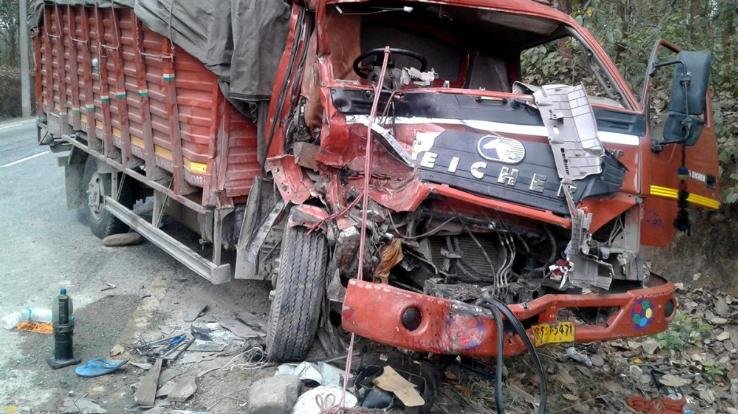 सोलन -बीती रात करीब 2:00 से 3:00 के बीच शहर के अस्पताल मार्ग पर एक बड़ा सड़क हादसा पेश आया है। हादसे में एक शीशे से भरा ट्रक बीच सड़क में पलट गया। जानकारी के अनुसार ट्रक (HP 12c 3981 ) (बेराडी) राजस्थान से सोलन पहुंचा जिसे रोड पर स्थित दुकान पर उतारा जाना था, लेकिन दुकान के सामने ही अस्पताल की तरफ से आ रही कार को साइड देने के लिए ड्राइवर ने जैसे ही ट्रक की ब्रेक लगाई वैसे ही ट्रक अनियंत्रित होकर पलट गया। इसमें ड्राइवर को हल्की चोट आई है। ट्रक के पलटने से साइड में पार्क की गई दो कारों को नुकसान हुआ है। स्थानीय लोगों को मदद से ड्राइवर को क्षेत्रीय अस्पताल पहुंचाया गया। पुलिस ने मौके पर पहुंचकर दुर्घटना के कारणों की जांच शुरू कर दी है।