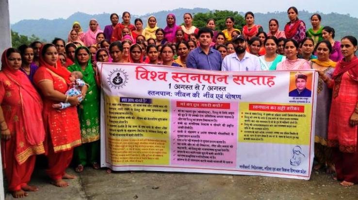 सामाजिक न्याय एवं अधिकारिता विभाग और महिला एवं बाल विकास विभाग झंडूता के सौजन्य से लगगांव में विश्व स्तनपान सप्ताह के अंतर्गत शिविर का आयोजन किया गया। शिविर की अध्यक्षता करते हुए बाल विकास परियोजना अधिकारी नरेंद्र कुमार ने कहा कि मां का दूध शिशु के लिए उत्तम आहार है। उन्होने कहा कि मां के दूध में वह सभी पोषक तत्व मौजूद होते है जोकि शिशु के पोषण के लिए आवश्यक होते है। उन्होने नवजात बच्चों को मां का पहला दूध देने तथा 6 माह तक केवल मां का दूध पिलाने का आग्रह किया। उन्होने बताया कि गर्भावस्था के दौरान गर्भवती महिलाओं को डेढ गुणा अधिक भोजन करना चाहिए। उन्होंने कहा नवजात शिशु को जन्म के एक घंटे के अंतर्गत स्तनपान करवाये इससे शिशु का मानसिक विकास होने के साथ साथ शिशु को होने वाले रोगों से बचाने में कारगर सिद्ध होता है। उन्होंने पोषण अभियान व प्रधानमंत्री मातृ वंदना योजना की जानकारी दी ।