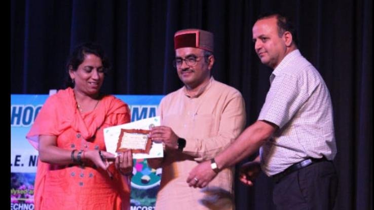 राजकीय आदर्श वरिष्ठ माध्यमिक विद्यालय धुंधन में हिमाचल प्रदेश विज्ञान प्रौद्योगिकी एवं पर्यावरण प्रकोष्ठ के सौजन्य से एक कार्यक्रम आयोजित किया गया। विद्यालय के ग्रीन फ्यूचर इको क्लब को हिमाचल प्रदेश विज्ञान प्रौद्योगिकी एवं पर्यावरण प्रकोष्ठ के सौजन्य से ग्रीन स्कूल प्रोग्राम ऑडिट रिपोर्ट के अनुसार ज़िला स्तर पर उत्कृष्ट रहने पर सम्मानित किया गया। सामाजिक न्याय एवं अधिकारिता तथा सहकारिता मंत्री डॉ राजीव सैजल तथा ज़िला उपनिदेशक चंद्र मोहन शर्मा द्वारा उत्कृष्ट कार्य करने वाले अध्यापकों को सम्मानित किया गया। विदित रहे कि पर्यावरण संरक्षण एवं स्वच्छता की दिशा में उत्कृष्ट योगदान के लिए विद्यालय ने पीला रैंक प्राप्त किया है। प्रधानाचार्य सरताज सिंह राठौर ने विज्ञान एवं पर्यावरण केंद्र दिल्ली द्वारा ग्रीन स्कूल प्रोग्राम ऑडिट रिपोर्ट के लिए कार्य करने वाले इको क्लब प्रभारी संतोष बट्टू व टीम में अन्य कार्य करने वाले अध्यापक राकेश कुमार,अमर सिंह, राजकुमार,राकेश रघुवंशी व सुषमा को भी सम्मानित किया।उन्होंने समस्त विद्यालय परिवार से पर्यावरण को स्वच्छ रखने में सहयोग देने की अपील भी की।