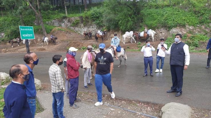 हिमाचल प्रदेश उच्च न्यायालय के दिशा-निर्देशानुसार प्रदेश में कोरोना महामारी की रोकथाम के लिए गठित जिला स्तरीय समिति ने आज शिमला के ढली, नालदेहरा, क्रैगनैनो तथा मशोबरा आदि स्थानों का औचक निरीक्षण कर आम जनमानस, पर्यटकों, दुकानदारों तथा घोड़ा मालिकों को कोविड नियमों के बारे जागरूक किया। अतिरिक्त मुख्य न्यायिक दंडाधिकारी एवं सचिव जिला विधिक सेवा प्राधिकरण रमणीक शर्मा ने आज यहां जानकारी देते हुए बताया कि माननीय उच्च न्यायालय के निर्देशानुसार यह कार्यवाही अमल में लाई जा रही है। उन्होंने निरीक्षण के दौरान पर्यटकों और लोगों को कोविड-19 के बारे में जागरूक किया। उन्होंने लोगों को मास्क पहनने और कोविड प्रोटोकॉल की अनुपालना सुनिश्चित करने के संबंध में भी जागरूक किया। इस दौरान लापरवाही बरतने वालों के चालान भी किए गए। इस अवसर पर पुलिस एवं प्रशासन के कर्मचारी एवं अन्य अधिकारीगण उपस्थित थे।