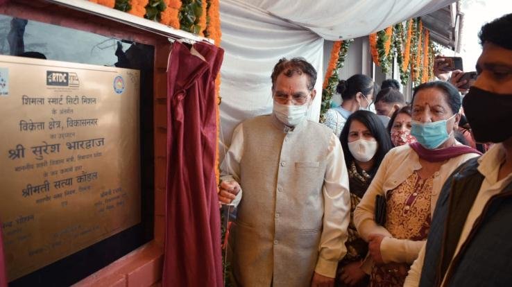 शिमला स्मार्ट सिटी परियोजना के तहत विकास नगर क्षेत्र में 14 करोड़ रुपये की विभिन्न परियोजनाएं क्रियान्वित की जा रही है। इस बात की जानकारी शहरी विकास, आवास, नगर नियोजन, विधि, संसदीय कार्य एवं सहकारिता मंत्री सुरेश भारद्वाज ने 35 लाख रुपये से निर्मित 16 दुकानों के उद्घाटन समारोह के दौरान दी। उन्होंने कहा कि स्मार्ट सिटी प्रोजेक्ट के तहत विकास नगर में सड़क के साथ बैठे तह बाजारियों के लिए यह 16 दुकानें निर्मित कर आबंटित की गई है। इन दुकानों के बनने से जहां सड़क के किनारे बैठे तह बाजारियों को दुकानों का लाभ प्राप्त होगा, वहीं शिमला शहर के सौंदर्यीकरण को भी लाभ प्राप्त होगा। कार्यक्रम के उपरांत शहरी विकास मंत्री नेे परियोजना के तहत विकास नगर में 11 करोड़ रुपये से निर्मित होने जा रही पार्किंग तथा 2 करोड़ 50 लाख रुपये से निर्मित होने वाली लिफ्ट का भी निरीक्षण किया। उन्होंने विभाग के अधिकारियों को निर्देश दिए कि इन कार्यों को अक्तूबर, 2021 तक पूर्ण किया जाए।