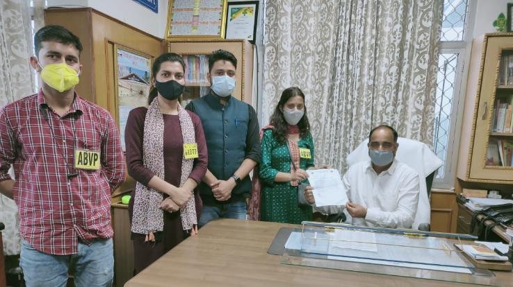 शिमला : स्पोर्ट्स एंड कल्चरल कोटा को फिर से शुरू करने की मांग को लेकर अभाविप ने शिक्षा निदेशक को सौंपा ज्ञापन
