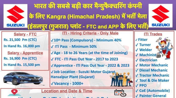 ** सुजुकी मोटर 1000 से अधिक आईटीआई डिप्लोमा होल्डर्स को देगी रोजगार