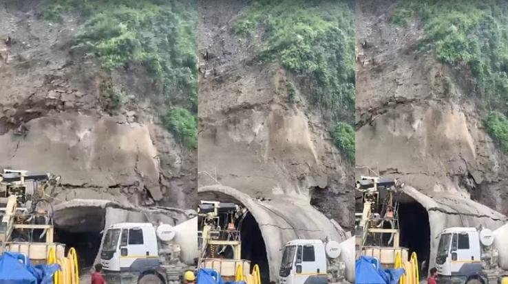 ** खुदाई से पहले ही टनल के ऊपर गिर गया पहाड़ी का बड़ा हिस्सा