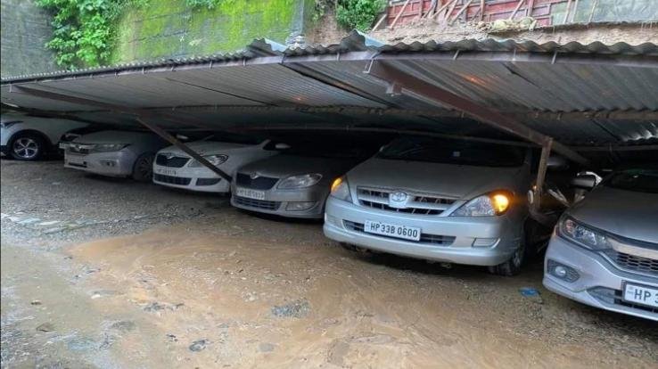 हिमाचल प्रदेश: मंडी में पार्किंग की छत पर गिरा डंगा, 12 गाड़िया क्षतिग्रस्त