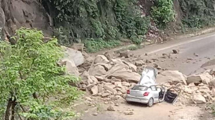 काँगड़ा : नूरपुर में राष्ट्रीय राजमार्ग के पास कार पर गिरी चट्टान, एक व्यक्ति घायल