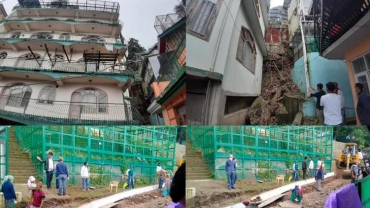 मुख्यमंत्री आवास का गिरा डंगा, 5 मकानों को खतरा, 2 मकान किए गए खाली