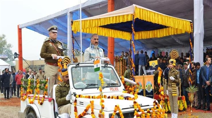 Chief Minister Thakur Sukhvinder Singh Sukhu conveyed his greetings to the people of the State on the occasion of the 53rd Statehood Day celebration held at Hamirpur, today. He unfurled the National Flag and took a salute from the contingents of Police, Home guards, Jawans of IRB Skoh, NCC cadets, Scouts & Guides led by DSP Ankit Sharma during an impressive march past. The Chief Minister while addressing the gathering said that the people of Himachal Pradesh had contributed immensely to the development journey of the state. He also mentioned the enormous contribution of the first Chief Minister, Dr. YS Parmar in the progress of the hill state. "It was on 11th December 2022 when the new government took over the reign of this hill state and from the very first day started to work for revamping the derailed system," said the Chief Minister. As per the Government's pledge for zero tolerance against corruption, stringent measures were being adopted to eliminate this social evil. The suspension of the Himachal Pradesh Staff Selection Commission, which was the hub of corruption and was selling jobs, was the first in this direction against corruption. "Now the selection will be ensured purely on the basis of merit, in a fair and transparent manner" reiterated the Chief Minister.