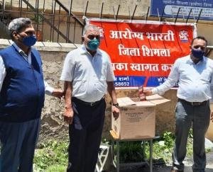 आज आरोग्य भारती शिमला द्वारा ब्योलिया में आयुर्वेद काढ़ा व जागरुकता पत्रक का निशुल्क वितरण किया गया। महिला मंडल ब्योलिया के सहयोग से सम्पन्न इस कार्यक्रम में मजदूरों, महिलाओं तथा जरुरतमंद लोगों को कोरोना महामारी से बचाव, ऑक्सीजन की कमी को योग, प्राणायाम तथा अन्य उपायों से कैसे बढ़ाएं आदि के बारे में जानकारी प्रदान की गई। आयुर्वेदिक काढ़े को बनाने की विधि, उसकी सेवन करने का ढंग एवं लाभ के बारे में विस्तृत जानकारी दी गई। इस अवसर पर आरोग्य भारती के राष्ट्रीय सचिव डॉ राकेश पण्डित, प्रांत उपाध्यक्ष डॉ अनिल मैहता, जिला शिमला अध्यक्ष डॉ नरेश शर्मा, नरेन्द्र सूद, डॉ यशपाल शर्मा, डॉ अनिल ठाकुर, डॉ अंजलि लीला पंडित, डॉ पोवल चंद्र, विरेन्द्र धवन, अमिता भारद्धाज एवं राकेश चौहान सहित अनेक लोगों ने भाग लिया। कोविड प्रोटोकॉल का पालन अनुसार आयोजित इस कार्यक्रम में स्थानीय लोगों कमल शर्मा, रामरतन शास्त्री, शीला शर्मा, महिला मंडल के सदस्यों इत्यादि अन्य गणमान्य लोगों का सहयोग रहा। लगभग 120 लोगों ने इस निशुल्क सुविधा का लाभ उठाया।