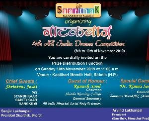 सार्थक सांस्कृतिक संघ करनाल जो कि उत्तर भारत की रंगमंचीय क्षेत्र की प्रसिद्ध संस्था है द्वारा शिमला काली बाड़ी मन्दिर हाल में अखिल भारतीय नाट्य प्रतियोगिता "नाटकबाज" का आयोजन किया जा रहा है। सार्थक के निर्देशक संजीव लखनपाल नें बताया कि इस प्रतियोगिता का आयोजन गत 4 वर्षों से शिमला में किया जा रहा है। इस बार प्रतियोगिता में 9 राज्यों की 18 नाट्य मंडलियां एवम 270 कलाकार भाग ले रहे हैं। चार दिवसीय ये प्रतियोगिता सात नवम्बर से 10 नवम्बर तक चलेगी। प्रतियोगिता के अंतिम दिवस 10 नवम्बर को स्तम्भकार पूर्व नोकरशाह श्रीनिवास जोशी द्वारा विजेताओं को पुरस्कार प्रदान किया जाएंगे। इस अवसर पर रंगमंच क्षेत्र की मुख्य प्रतिभाओं को भी सम्मानित किया जाएगा। अब तक भारत भर से गयारह हस्तियों को सम्मानित किया जा चुका है। इस बार नाटकबाज लाइफ टाइम अचीवमेंट अवार्ड इंदौर से शरद सबल को,नाटकबाज थेटर प्रोमोटर अवार्ड रोहतक से विश्वदीपक त्रिखा को जबकि नाटकबाज युवा रंगकर्मी अवार्ड मनीष जोशी को प्रदान किया जाएगा। इस सम्मान में प्रशस्ति पत्र और दुशाला प्रदान किया जाता है।अभी तक प्रतियोगिता में डाल्टन गंज, जमशेदपुर, सहारनपुर, बीकानेर, झारखंड, मणिपुर, शाहजहांपुर, देहरादून, सहारनपुर के कलाकार अपनी प्रतिभा का प्रदर्शन कर चुके हैं। निर्णायक मंडल में चक्रेश,सचिन शर्मा कम तरुण मिसरा सम्मिलित है। प्रतियोगिया के अवसर पर नाट्य निर्देशकों के अतिरिक्त सुशांत लखनपाल,मेघराज लुथरा, तरुण विरमानी एवम संजीव लखनपाल उपस्थित रहे।