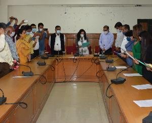 उपायुक्त सोलन कृतिका कुल्हारी ने आज यहां नगर निगम सोलन के मनोनीत पार्षदों को शपथ दिलाई। कृतिका कुल्हारी ने नगर निगम सोलन के लिए मनोनीत पार्षद शकुंतला शर्मा, संजीव मोहन, प्रियंका अग्रवाल, दिनेश कुमार तथा स्निगधा चोपड़ा को शपथ दिलाई। उपायुक्त ने इस अवसर पर सभी मनोनीत पार्षदों को बधाई देते हुए आशा जताई कि वे क्षेत्र में विकास कार्यों को गति प्रदान करने में सहायक बनेंगे। उन्होंने पार्षदों से आग्रह किया कि केन्द्र एवं प्रदेश सरकार की विभिन्न योजनाओं को जन-जन तक पहुंचाएं ताकि लक्षित वर्ग इनसे समय पर लाभान्वित हो सकें। प्रदेश भाजपा कार्यकारिणी सदस्य डॉ. राजेश कश्यप, जिला भाजपा महामंत्री नंदराम कश्यप, भाजपा मण्डल सोलन के महामंत्री भरत साहनी, मीडिया प्रभारी नरेश गांधी, अतिरिक्त उपायुक्त सोलन ज़फ़र इकबाल, उपमण्डलाधिकारी सोलन अजय यादव, नगर निगम सोलन के आयुक्त एलआर. वर्मा सहित अन्य गणमान्य व्यक्ति इस अवसर पर उपस्थित थे।