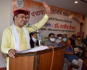 कसौली विधानसभा क्षेत्र में पंचायती राज प्रतिनिधि सम्मान समारोह आयोजित किया गया। इस दौरान स्वास्थ्य एवं परिवार कल्याण तथा आयुष मंत्री डॉ.राजीव सैजल ने कहा कि पंचायत राज संस्थाओं के प्रतिनिधि विभिन्न कल्याणकारी योजनाओं के माध्यम से जन-जन को लाभान्वित करने में महत्वपूर्ण भूमिका निभा सकते हैं। चुने हुए प्रतिनिधि को दलगत राजनीति से ऊपर उठकर क्षेत्र का समान विकास सुनिश्चित बनाने के लिए कार्य करना चाहिए। उन्होंने आशा जताई कि सभी प्रतिनिधि विकास को गति प्रदान करते हुए जन समस्याओं के निवारण में सदैव तत्पर रहेंगे। उन्होंने कहा कि सोलन जिला में 29 तथा कसौली विधानसभा क्षेत्र में 06 नई ग्राम पंचायतें गठित की गई। इनके गठन से सभी क्षेत्रवासी लाभान्वित हुए हैं। उन्होंने इस अवसर पर जन समस्याएं भी सुनीं और अधिकारियों को इनके शीघ्र निपटारे के निर्देश दिए। उपायुक्त सोलन कृतिका कुल्हारी ने इस अवसर पर पंचायती राज संस्थाओं के प्रतिनिधियों से आग्रह किया कि वह स्पष्ट सोच तथा दूरदर्शिता के साथ कार्य करें। उन्होंने कहा कि पंचायती राज संस्थाएं लोकतन्त्र की मूल इकाई हैं और इनके माध्यम से व्यापक स्तर पर लोगों का सामाजिक एवं आर्थिक सशक्तिकरण सुनिश्चित बनाया जा सकता है। प्रदेश महिला आयोग की अध्यक्ष डॉ. डेजी ठाकुर, एपीएमसी सोलन के अध्यक्ष संजीव कश्यप, जिला सहकारी विपणन एवं उपभेक्ता संघ के अध्यक्ष सुन्दरम ठाकुर, दुधारू सहकारी सभा के अध्यक्ष रामेश्वर शर्मा, भाजपा मण्डल कसौली के अध्यक्ष कपूर सिंह वर्मा, जोगेन्द्रा सहकारी बैंक के उपाध्यक्ष यश्पाल ठाकुर, क्षेत्रीय परिवहन प्राधिकरण के सदस्य मदन मोहन मेहता, किशोर न्याय बोर्ड के सदस्य राजकुमार सिंगला, जिला भाजपा उपाध्यक्ष दौलत ठाकुर, जिला भाजपा महामन्त्री अमर सिंह परिहार, युवा बोर्ड के सदस्य संजय ठाकुर, जेसीसी सोलन के निदेशक लाज किशोर शर्मा, वरिष्ठ भाजपा नेता तीर्थ राम ठाकुर, भाजयुमो सोलन के अध्यक्ष नरेन्द्र ठाकुर, भाजपा तथा भाजयुमो के अन्य पदाधिकारी, उपमण्डलाधिकारी कसौली डॉ. संजीव धीमान, खण्ड विकास अधिकारी सोलन रमेश शर्मा, खण्ड विकास अधिकारी धर्मपुर सुभाष अत्री, तहसीलदार कसौली मनमोहन सहित अन्य अधिकारी इस अवसर पर उपस्थित थे।
