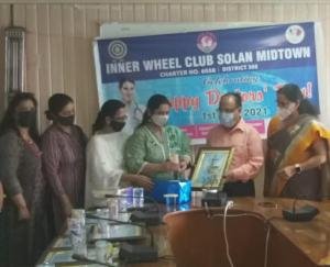 आज जब पूरा विश्व कोरोना महामारी से जूझ रहा है तो इस संकट की घड़ी में चिकित्सक अपने जीवन की परवाह किए बिना पहली पंक्ति में खड़े होकर मानव सेवा में जुटे हैं। उनके इसी महत्वपूर्ण योगदान के लिए आज इनरव्हील क्लब मिडटाउन सोलन द्वारा चिकित्सक दिवस पर उन्हें सम्मानित किया गया। इस मौक़े पर सोलन मिडटाउन ने सोलन अस्पताल के CMO डॉक्टर राज उप्पल और उनकी टीम की सहयोगी डॉक्टर मुक्ता व आयुर्वेदिक हॉस्पिटल के डॉक्टर हितेश, डॉक्टर मनीष मित्तल और अन्य 27 डॉक्टरों को सम्मान पत्र देकर सम्मानित किया । क्लब सदस्यों ने डॉक्टरों को सम्मान के रूप में पौधे, कैंडल और सम्मान पत्र भेंट किए। कार्यक्रम के दौरान क्लब के सदस्यों ने सोशल डिस्टेंसिंग के नियमों का पालन किया। इस मौक़े पर क्लब की ओर से CCC ऊषा ठाकुर, सविता भला, मनजीत, ज्योति, अनीता और ऑडिटर दीपाली ठाकुर मौजूद रही।
